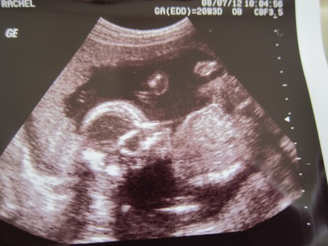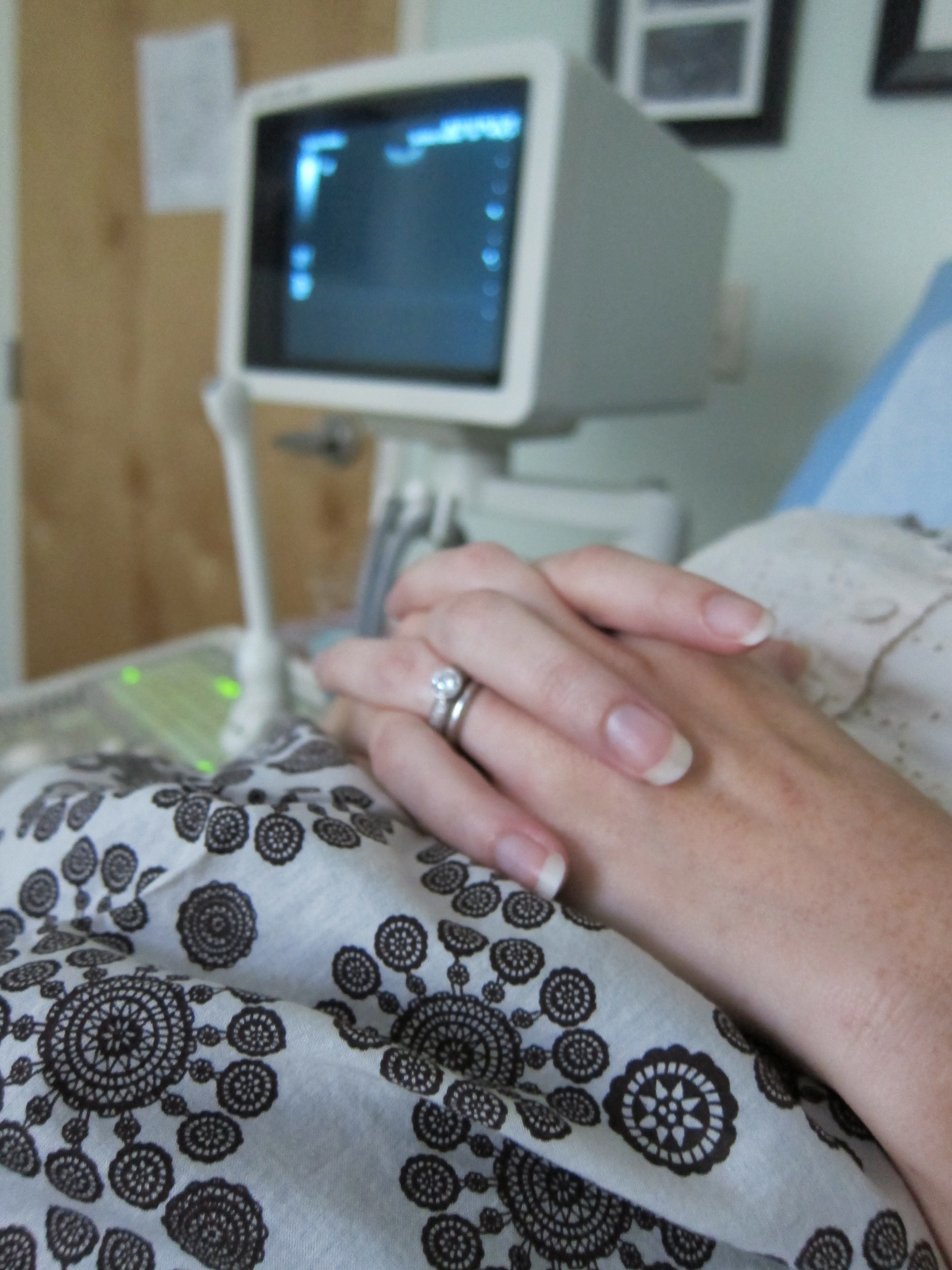 Crumb was snoozing quietly when the ultrasound tech first started working.  He had his head all tucked down and was rolled into a ball, making it hard to see anything.  J started making conversation with my abdomen and that woke him up! He already loves his daddy’s voice!
